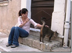 在街上遇到悠閒又親人的貓。長的跟我家的貓好像。不過比較壯一點,臉也比較方。